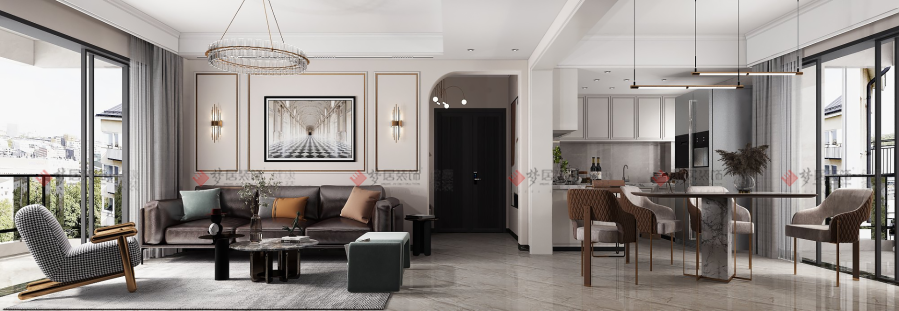| 設(shè)計(jì)說(shuō)明:設(shè)計(jì)師沒有用特定的風(fēng)格去界定這套作品,空間交織融和現(xiàn)代、北歐、美式等多種風(fēng)格元素,精煉地碰撞出完美的混搭主義。和諧干凈的空間界面,最終呈現(xiàn)出一種自然舒適的風(fēng)格形態(tài)。設(shè)計(jì)元素多而不雜,空間色彩也盡顯低調(diào)的奢華,家具、軟飾的搭配不拘一格,黃銅搭配現(xiàn)代簡(jiǎn)約的家具,更顯高檔,展現(xiàn)出既復(fù)古又時(shí)尚的精致空間。打破風(fēng)格間的界限,將業(yè)主喜歡的元素在空間中達(dá)成平衡取舍,讓空間以隨性而自由的姿態(tài)展現(xiàn)在業(yè)主面前,達(dá)到空間的舒適性、和諧性的統(tǒng)一。 | |||