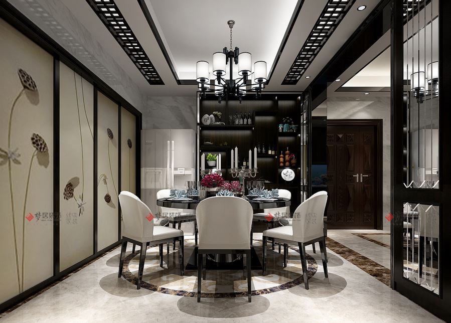 | 設(shè)計(jì)說明:新中式設(shè)計(jì)是傳統(tǒng)與現(xiàn)代居室風(fēng)格的碰撞,將中式元素與現(xiàn)代材質(zhì)的巧妙糅合,以現(xiàn)代的裝飾手法和家具,結(jié)合古典中式的裝飾元素,來呈現(xiàn)亦古亦今的空間氛圍。中式風(fēng)格與現(xiàn)代風(fēng)格的簡單素雅自然銜接,使生活的實(shí)用性和對傳統(tǒng)文化的追求同時(shí)得到了滿足。室內(nèi)布局造型簡潔現(xiàn)代,飾以典雅的花紋、裝飾單品,這種將時(shí)尚與古典的巧妙結(jié)合給人以強(qiáng)烈的視意識。室內(nèi)對稱式的布局方式,格調(diào)高雅,造型優(yōu)美,色彩濃重而成熟。 | |||