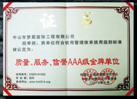 經(jīng)過二十年的發(fā)展和壯大,我們的業(yè)務已遍布全國八省百余城市,公司憑著創(chuàng)新的營銷理念、先進的管理團隊、優(yōu)質(zhì)的工程質(zhì)量,已發(fā)展成為裝飾行業(yè)的新標桿。目前我們擁有高端的專業(yè)設計公司、工程管理公司、先進的木業(yè)制造公司,專業(yè)打造集設計、施工、建材選購、倉儲配送中心、售后服務于一體的完善服務體系。依托公司的整體實力,不斷銳意進取,迅速成為裝飾界的領軍企業(yè),多次受到同行協(xié)會及消費者的嘉獎和好評。并于2004年3月成為中山市消委會“誠信加盟單位”;2006年分別榮獲“廣東省消費者滿意單位”、“ICDA中國家庭裝飾服務中心”、“全國優(yōu)秀裝飾企業(yè)”,2010年分別獲得“全國十佳誠信單位”、“質(zhì)量、服務、信譽AAA級金牌單位”,2011年分別榮獲“廣東省著名品牌”、“全國住宅裝飾裝修行業(yè)百強企業(yè)”,2012年被評為“廣東省守合同、重信用企業(yè)”等。在務實國內(nèi)市場做大做強的同時,也不斷開辟國外市場,走出去為全世界服務是我們的新目標。我們一直在為客戶尋求一個更好的生活表現(xiàn)形式,一直在探求一種更舒適的家居感覺,我們秉承“合法、正面、共贏”的經(jīng)營理念,綠色環(huán)保裝修成為我們行業(yè)中的亮點,“低調(diào)、務實、執(zhí)著”的做事風格,使我們在行業(yè)中不斷創(chuàng)造一個又一個的典范?!坝眯闹簦瑐魇乐印背蔀槲覀儺吷淖非?,我們用真心、愛心、誠心筑起一道道生命中亮麗的風景線。
