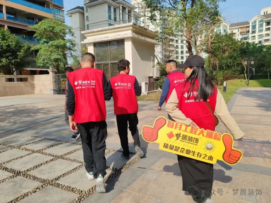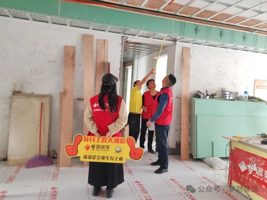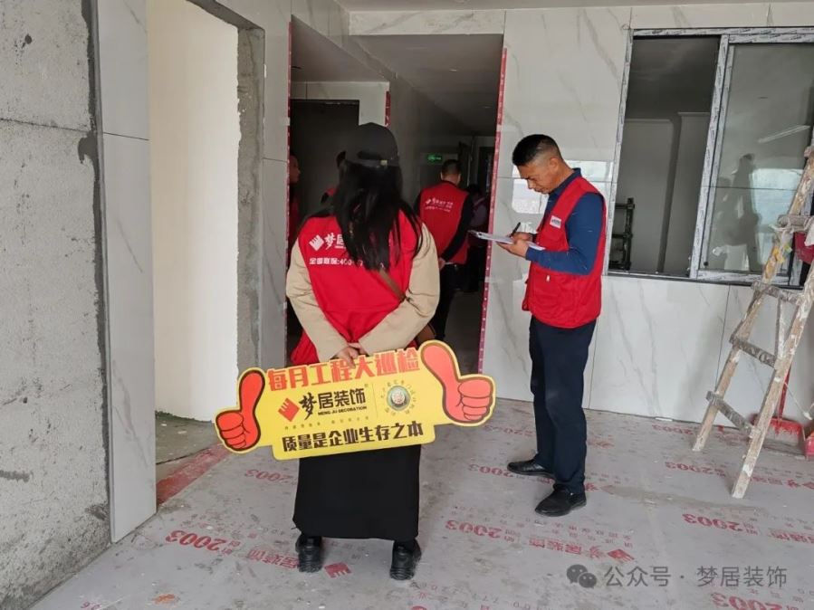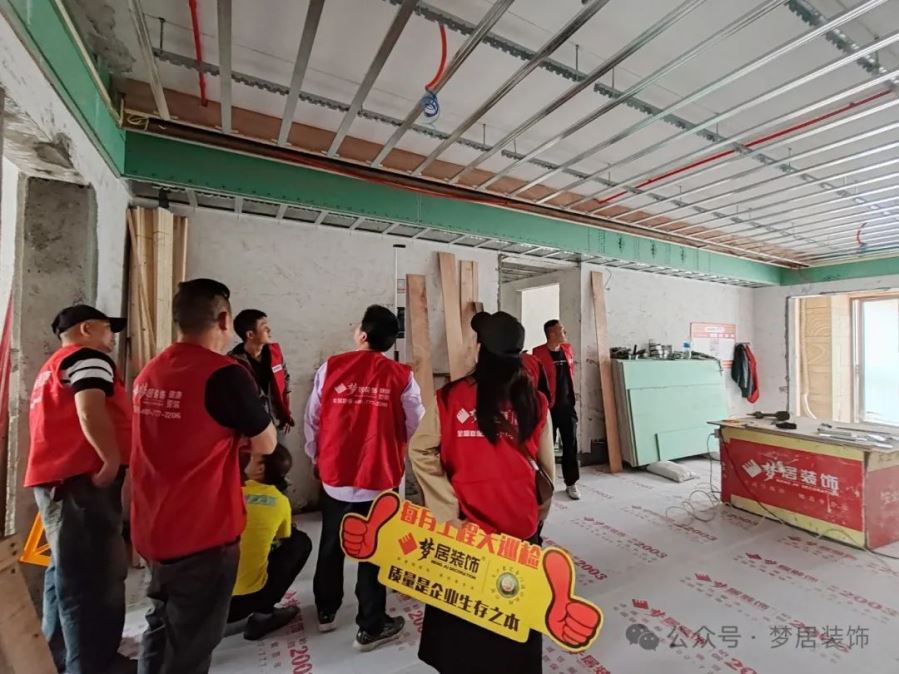 夢居每月工地大巡檢,共同監(jiān)督解決施工過程中發(fā)現(xiàn)的問題,促進工程順利進行。細致完善的巡檢制度以及強化質(zhì)量要求,進一步提高施工質(zhì)量和效率,為裝修項目的順利進行提供有力保障,為業(yè)主愛家保駕護航!