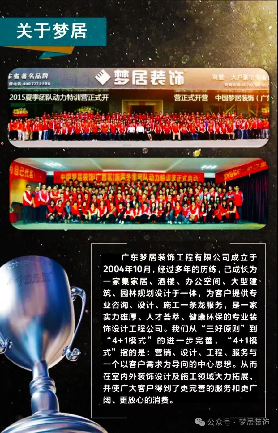 廣東夢居裝飾,始終秉承“共創(chuàng),共享,共贏”的發(fā)展理念,以卓越的工程品質、優(yōu)質的服務和前瞻的市場洞察力,贏得市場份額與口碑。我們深知,每一份成就的背后,都離不開每一位夢居家人的辛勤付出與不懈努力。因此,對于每一位伙伴的加入,我們倍感珍惜,視之為共同成長道路上的寶貴財富。
