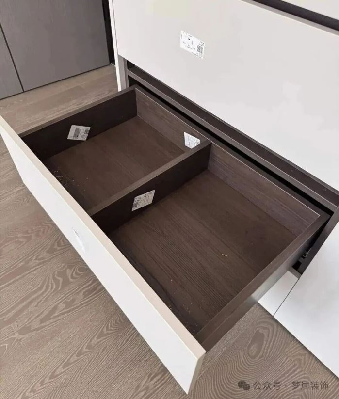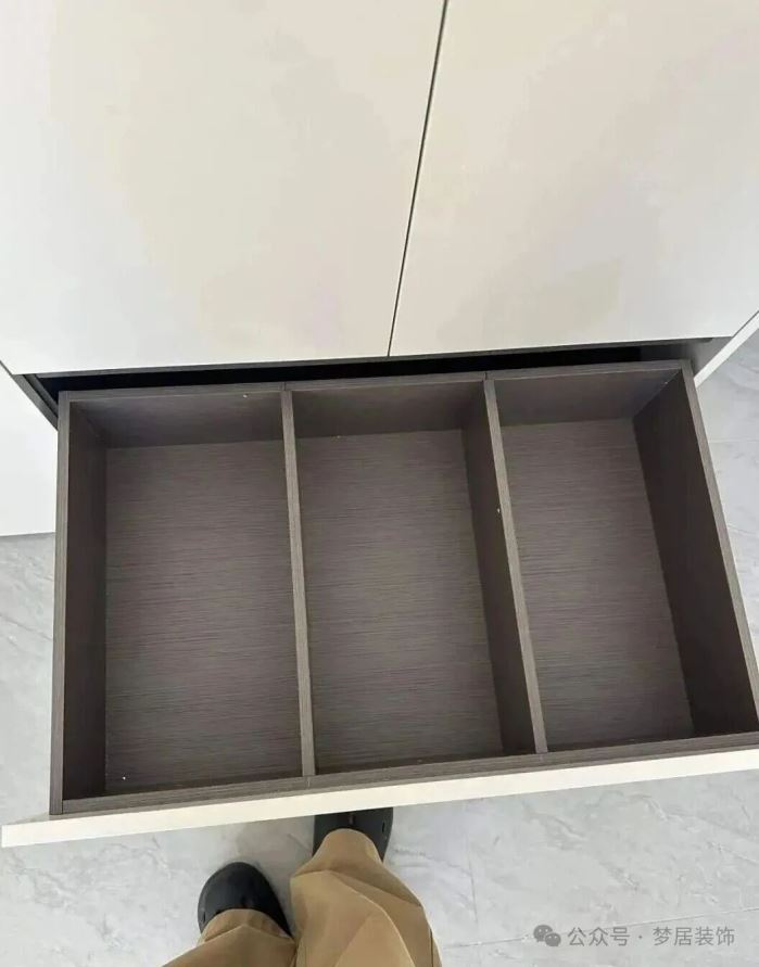年輕人在做柜子的時候,已經(jīng)在重新規(guī)劃收納的這個問題了,做定制的時候直接把抽屜分成幾個格子,一步到位解決問題。
