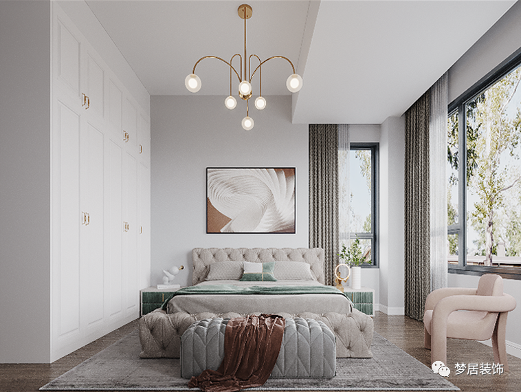 將美拉德風(fēng)格搭配應(yīng)用在臥室也是不錯(cuò)的選擇,棕色系自帶的低調(diào)、踏實(shí)營(yíng)造出舒適的休憩氛圍。在舒適的床品之上點(diǎn)綴一條棕色蓋毯,讓居者在微涼的晚秋時(shí)節(jié),更能感受到屬于家的暖意。