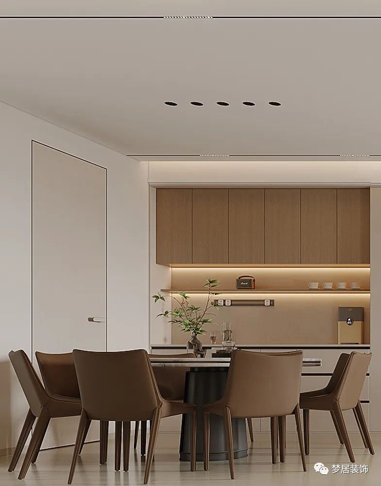 溫柔奶油風(fēng),微甜的奶茶色和醇厚奶咖色層層漸進(jìn),清淡透亮之中疊加變化,賦予了整個(gè)空間濃郁而純粹的香甜優(yōu)雅,搭配綠植,溫潤而高級(jí),十分療愈。