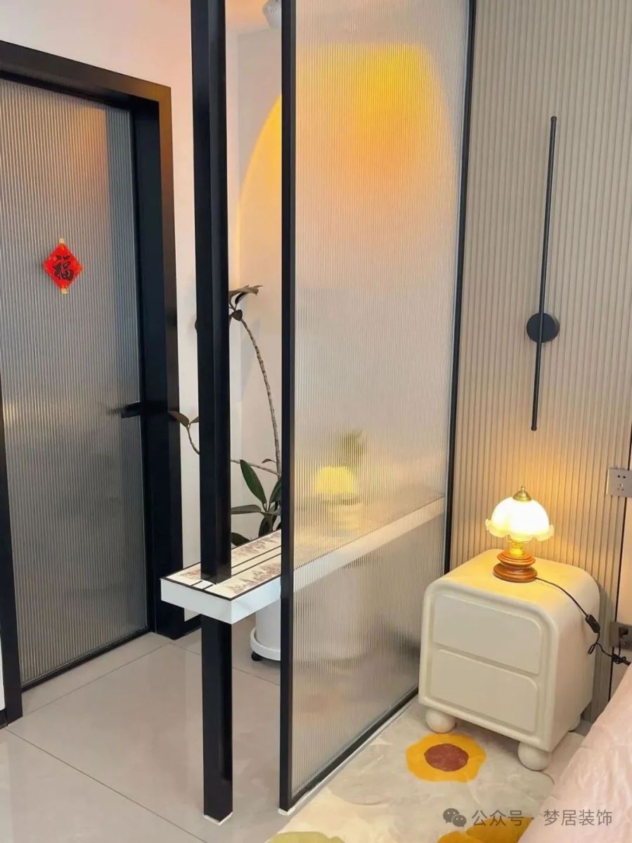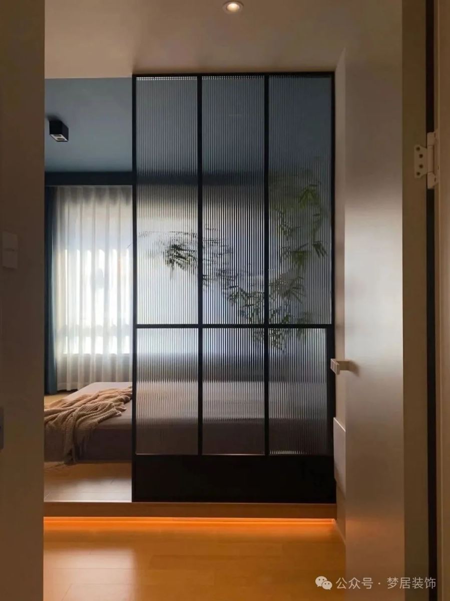 建議可以考慮以室內(nèi)窗的形式,來(lái)改善臥室的采光與通風(fēng),讓視覺(jué)更通透,空間也更有層次感了。