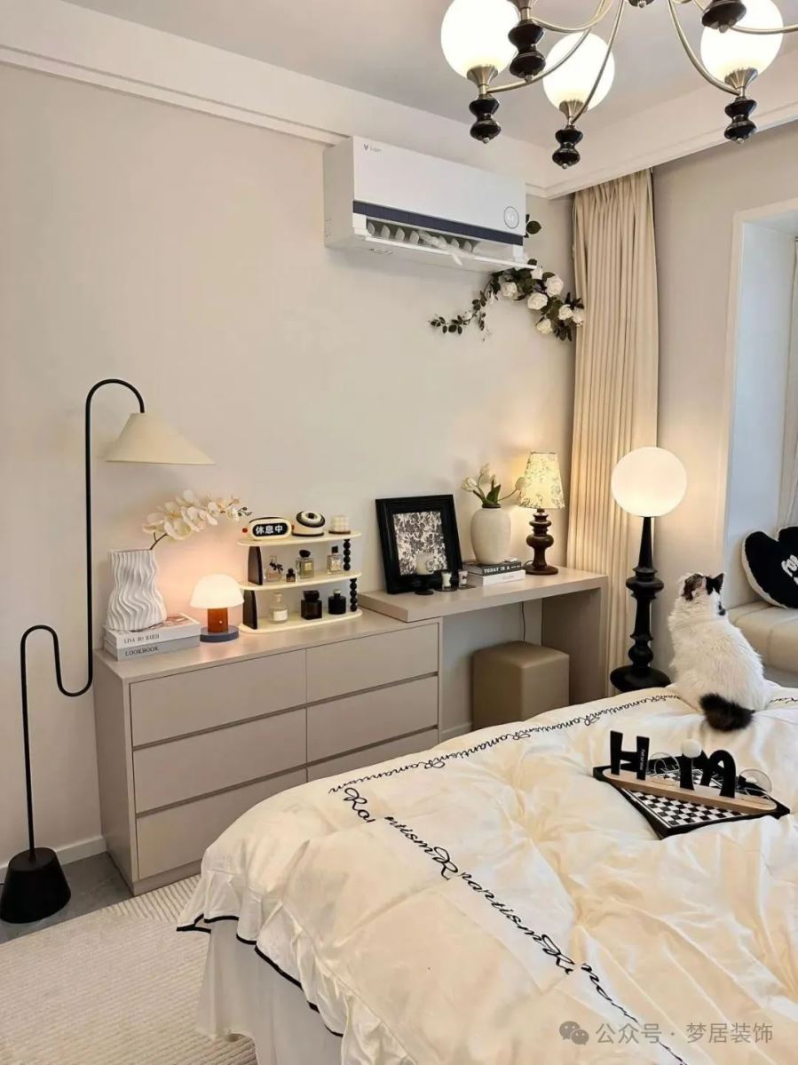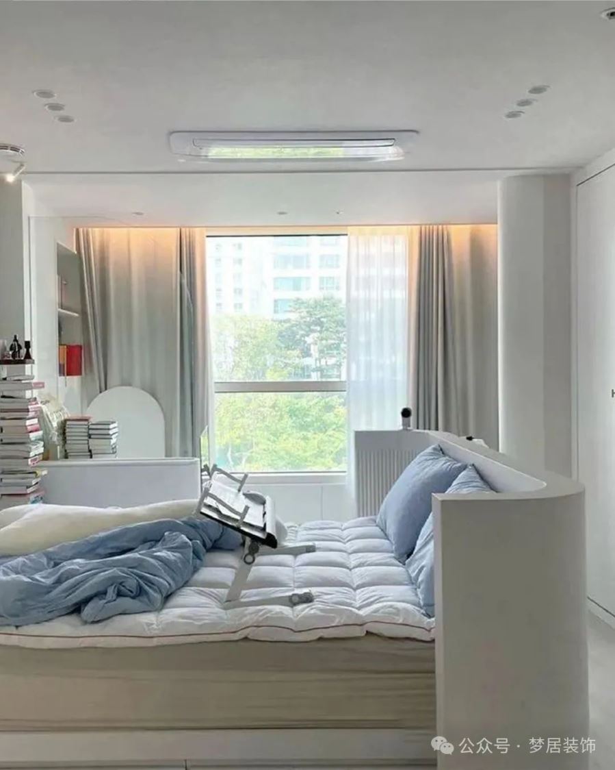 空調(diào)一般是安裝在床尾的左右兩側(cè),這樣既可以保證空氣能在室內(nèi)更好的循環(huán),還能避免空調(diào)直吹帶來(lái)的不適感。