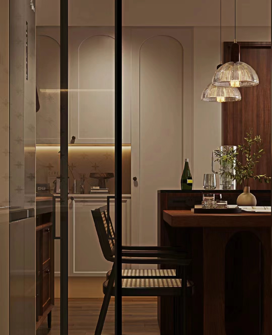 通過簡化造型與裝飾,讓整個空間的基調(diào)呈現(xiàn)出一種優(yōu)雅低調(diào)、克制內(nèi)斂的氣息,在不經(jīng)意間散發(fā)出摩登復(fù)古的美學(xué)氣質(zhì)。