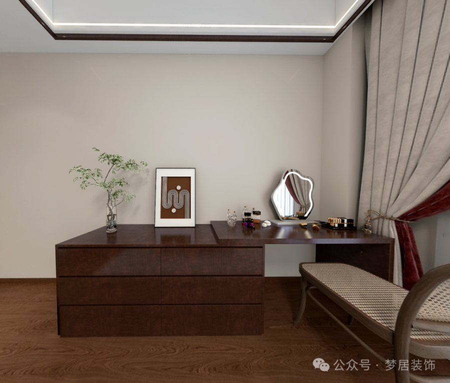 衣帽間設(shè)計(jì)也是舒適而優(yōu)雅,中式的色彩鋪就空間動(dòng)人的格調(diào),柔軟、放松且寧靜。