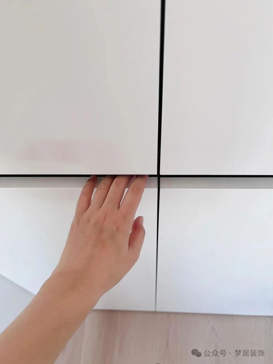 柜子裝拉手一不小心就會刮碰到,定制的時候可要求做無拉手設(shè)計。上