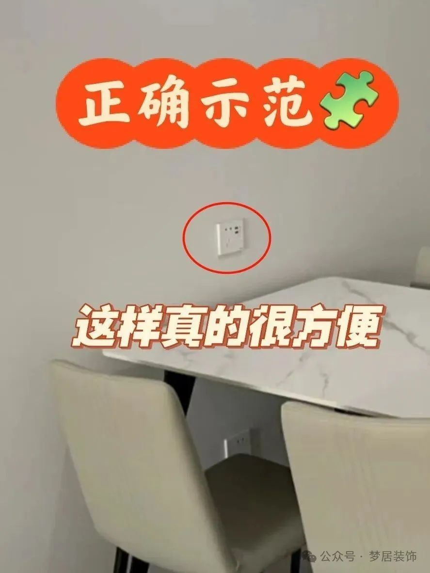 餐桌邊預(yù)留一個插座,吃火鍋烤肉時方便,不然,到時候只能接插線板,亂七八糟的線會讓桌面顯得很亂。