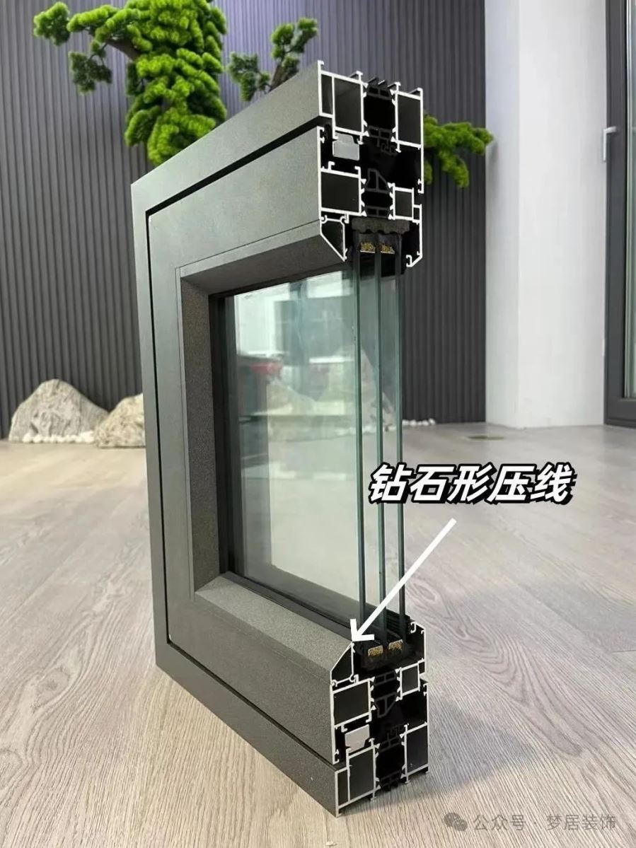 系統(tǒng)窗的壓線樣式有直角的和鉆石形的,選擇鉆石形斜邊壓線會更好,它款式時尚輕盈,更能凸顯出極窄邊框的精致感,看上去視野更開闊。