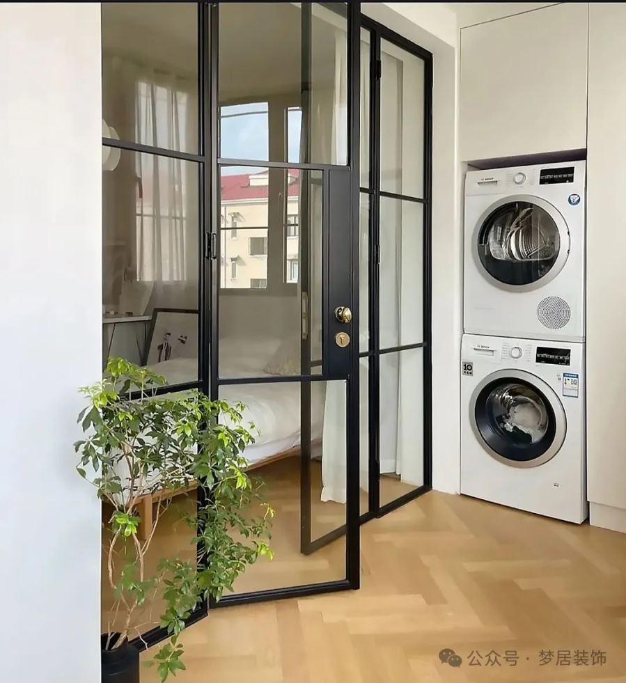 ④收納設計:設置收納柜,增加收納空間。尤其適合半打通的陽臺。